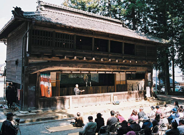 天保11年(1840年)に建てられた日本最古の人形劇舞台で国の重要有形民俗文化財。300年以上の歴史を持つ伝統人形浄瑠璃黒田人形は、毎年4月、下黒田諏訪神社の春祭りで奉納上演されます。