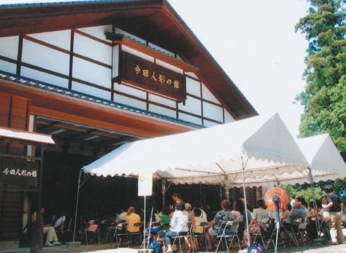 1994年、今田人形芝居の保存と継承を行い、伝統人形劇の研修・後継者の育成の場として活用することを目的として建設されました。毎年10月、大宮八幡宮神社秋季祭典の際に300年以上の歴史を持つ伝統人形浄瑠璃今田人形の奉納公演が行われています。