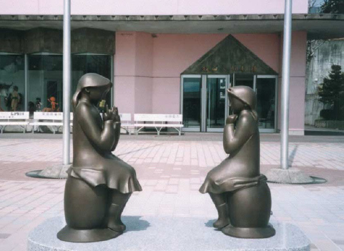 2000年、「人形を操っているお姉さん」と「それを見つめている妹」の人形モ二ュメントが設置されました。「赤い靴はいていた女の子」(横浜山下公園)の像などを手がけた、山本正道氏のデザインです。